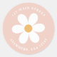 Retro inspired first birthday return address labels with 70's style daisies and boho fonts and colours.