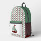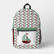 Retro Dark Red and Sage Sailboat Anchors Monogram Printed Backpack