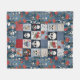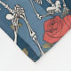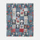 Retro Denim Patchwork with Roses Skulls Skeletons Fleece Blanket