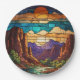 Retro desert scene Sedona mountains stainglass art Paper Plate