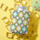 Retro Diamond in Circle Pattern Blue Green Gold Can Cooler