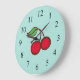 Retro Diner Kitchen Turquoise Cherry Wall Clock
