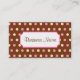Pink and cream dots on a brown background give this business card retro style. Customise this business card to suit your needs by changing the information. Use these cute polk a dot business cards for a bakery, boutique, shop, ice cream shop, chocolatier, daycare, school, pre-school, salon, childcare, etc...The designs are from original art.