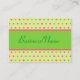 Bright dots of colour decorate this retro style business card. Customise the card to suit your needs, add or delete information etc...Use these business cards for a business, attorney, consultant, education, educator, golf, golf pro, golf course, landscaping, lawn care, contractor, programmer, tutor, musician, artist, painter, stylist, hair stylist, daycare, preschool, florist, bakery, designer, barber, accountant, restaurant, boutique, shop, etc...
