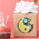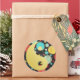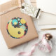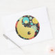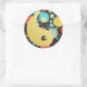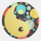 Round sticker with an image of a yin and yang symbol that is half gold and half a vintage 1960s image of colourful dots and circles in various sizes on black. See matching confetti, favour bag, favour tag and wrapping paper. See the entire Psychedelic 60s Sticker collection in the INVITES | Stickers & Labels section.