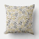 A contemporary throw pillow with a dotted pattern in black, gold and warm grey on an ivory background. Mid-century inspired.