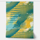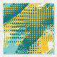 This artwork showcases a vibrant and energetic pattern of dots and dynamic brushstrokes, creating a striking visual effect. The composition features a bold colour palette of teal, yellow, and white, with the dots varying in size and density to form waves and gradients across the canvas. The interplay between the smooth, rounded dots and the rough, sweeping brushstrokes adds a sense of movement and rhythm to the piece, evoking a retro, pop-art inspired aesthetic. The design is both playful and bold, with a sense of modern abstraction.