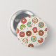 A button with a cute pattern featuring doughnuts tumbling all around. Pink, green, brown and cream colours really give this design a cool retro feel.