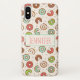 Casemate phone case with a cute pattern featuring doughnuts tumbling all around. Pink, green, brown and cream colours really give this design a cool retro feel. A rectangle layered over top with your name inside, written in a cute casual style font.