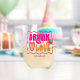 Celebrate the bride-to-be with these trendy and unique stemless wine glasses. This pink and peachy orange "drunk in love" retro themed stemless wine glass is customisable with your recipient's name. These make perfect and memorable party favours!
