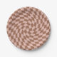 Retro Dusty Brown Pink Checks Warped Chequerboard Paper Plate