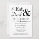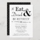 It's going to be a heck of a retirement party so set the stage with this funky retro black and white Eat, Drink & Retire! invitation.