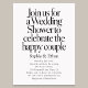 Announce the celebration of a lifetime with a Wedding Shower Invitation that brings the bold sophistication of a 90s editorial spread to one of love’s most cherished traditions. The heading Join Us For A Wedding Shower To Celebrate The Happy Couple commands the page in a commanding display serif font — tall, sculptural, and radiating the kind of typographic confidence that transforms a simple invitation into a true design moment. Below, every essential detail of your gathering flows in elegant serif text, offering a refined counterbalance that feels polished, warm, and completely timeless — the perfect pairing of drama and grace.