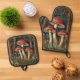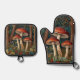 Retro elegant mushroom forest oven mitt & pot holder set