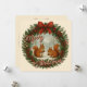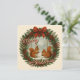 This retro-style holiday card features a wreath decorated with a gold-yellow bow, green holly leaves, red berries, and two adorable squirrels. Its classy yet rustic design beautifully captures the essence of the December holiday season and appeals to those who appreciate artistic illustrations. The card also offers customisation options, allowing you to personalise it with your company name, family name, or individual names. Additionally, you can include a custom greeting poem on the back, making it a thoughtful choice for spreading holiday cheer.