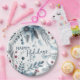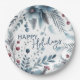 This beautifully designed holiday paper plate features a classic "Happy Holidays" greeting, which you can customise to your preference, set against a beautiful dark teal blue, white, and maroon red wreath bouquet pattern. Its classy yet rustic design beautifully captures the essence of the December holiday season and appeals to those who appreciate artistic illustrations. The plate also offers customisation options, allowing you to personalise it with your custom greeting, making it a thoughtful choice for spreading holiday cheer.
