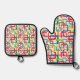 A Fun Retro Coloured Kitchen Oven Mitt And Pot Holder Designed In Bright Colours
