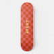 retro esthetic trendy checkerboard pattern skateboard in pink and red, for him or for her is your personalized name in a bold funky and grunge distressed lettering. Get the prefect abstract design for a teen birthday or Christmas present. Just write your own name for a custom skateboard.