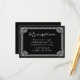 This elegant black and white retro style card features a fancy white European style floral frame highlighting your wedding reception details.