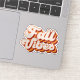 This retro-inspired fall design prominently features the phrase "Fall Vibes" in a bold, 3D-style font that immediately grabs attention. The text is layered with warm autumn colours, including rich oranges, deep reds, and soft creams, creating a sense of depth and dimension that makes the words pop off the background. The vintage-style typography with its soft, rounded edges gives the design a nostalgic feel, reminiscent of classic 1970s aesthetics. The playful shadows and colour contrasts add to the design's dynamic, eye-catching appeal.