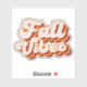 This retro-inspired fall design prominently features the phrase "Fall Vibes" in a bold, 3D-style font that immediately grabs attention. The text is layered with warm autumn colours, including rich oranges, deep reds, and soft creams, creating a sense of depth and dimension that makes the words pop off the background. The vintage-style typography with its soft, rounded edges gives the design a nostalgic feel, reminiscent of classic 1970s aesthetics. The playful shadows and colour contrasts add to the design's dynamic, eye-catching appeal.