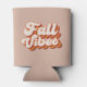 This retro-inspired fall design prominently features the phrase "Fall Vibes" in a bold, 3D-style font that immediately grabs attention. The text is layered with warm autumn colours, including rich oranges, deep reds, and soft creams, creating a sense of depth and dimension that makes the words pop off the background. The vintage-style typography with its soft, rounded edges gives the design a nostalgic feel, reminiscent of classic 1970s aesthetics. The playful shadows and colour contrasts add to the design's dynamic, eye-catching appeal.