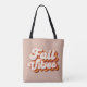 This retro-inspired fall design prominently features the phrase "Fall Vibes" in a bold, 3D-style font that immediately grabs attention. The text is layered with warm autumn colours, including rich oranges, deep reds, and soft creams, creating a sense of depth and dimension that makes the words pop off the background. The vintage-style typography with its soft, rounded edges gives the design a nostalgic feel, reminiscent of classic 1970s aesthetics. The playful shadows and colour contrasts add to the design's dynamic, eye-catching appeal.