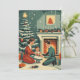 Retro Family Christmas by the Fireplace Holiday Card