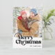 Send a holiday greeting to your loved ones with this simple Holiday photo card. Featuring "Merry Christmas" in a retro-inspired black calligraphy font. Personalise with your name and photo or click "Click to customise further" to change the font style, colour and size or add additional text boxes.