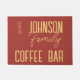 This is a personalised, family name, coffee bar themed design. This modern design is in rustic brown with gold coloured stylish script typography. It has space for you to add your family name and year established. Perfect for your family kitchen or home coffee station or bar area and ideal as a personalised house warming gift. To personalise, simply add your name and year in the personalise this text box, here you can change the "Coffee Bar" text if you want to. To change the colour or font check out the design editing tool. For help with personalisation or for a custom design, contact me via zazzle chat.