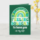 Cute retro style green lettering that says "Feeling so Lucky to have you in my life" alongside a vintage style rainbow and matching shamrock. Perfect for celebrating St. Patrick's Day!