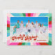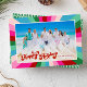 Retro Festive Rainbow Pink Christmas Photo Holiday Card