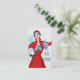 Vintage illustration of a woman modelling a dress from the mid 20th century. Red with 3/4 s;eeves and a tight waist. A lue and white striped bodice give a flair.