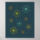 Retro Fireworks Starbursts on Dark Blue Midcentury Poster