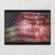 Retro Flag and Fireworks Postcard