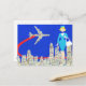 When you see this Retro Flight Attendant Postcard it will be love at first flight! The design features a royal blue background with a city skyline and aeroplane made from a vintage roadmap. There is also a minimalist cartoon drawing of a 1960's flight attendant, complete with an aqua uniform and pillbox hat. This is a perfect greeting for flight attendants, frequent flyers and anyone who loves vintage glamour.