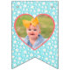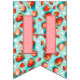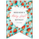 Looking for berry first birthday decor? Look at our Retro Floral Berry First Happy Birthday Photo Bunting Flags! It features a blue-teal background adorned with vibrant strawberries and white flowers, creating a fun retro vibe for your celebration. Perfect for a strawberry themed 1st birthday party, setting the tone for a joyful and colourful day. Beautiful strawberry theme birthday decorations! You can add an image.