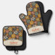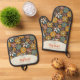 Retro Floral Brown Gold Teal Personalised Oven Mitt & Pot Holder Set