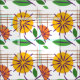 This sunny floral pattern is inspired by retro Mid Century Modern motifs of the 1950's and 1960's. Abstract orange and yellow flowers with green leaves and purple accents backed by brown crosshatched linear elements make up this delightfully updated kitsch style design.