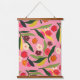 Retro Floral Fields Print" brings a playful, vintage-inspired floral pattern to life, featuring bold blossoms and lush green leaves on a soft pink background. Perfect for adding a cheerful, retro vibe to any space.