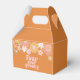 Retro inspired four ever groovy 4th birthday favour boxes with 70's style flowers and boho fonts and colours.