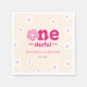 Cute girl 1st year birthday paper napkin features a pink bold typography text "onederful" in the middle and surrounded by retro groovy flowers.