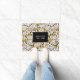 Retro Floral doormat with cream and mustard yellow flowers set on a black background. Add your own custom text if required. Matching items available. Original art from artists own illustrations. Please use the message me button below for help with further customisation and special requests. © Zoe Chapman Design