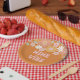 Retro inspired Nine is a vibe 9th birthday plates with 70's style flowers and boho fonts and colours.