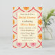 Celebrate love with timeless style using this custom personalized bridal shower invitation featuring a charming retro floral ogee pattern. Designed with pink and orange flowers nestled between bold red ogee shapes on a warm beige background, this invitation is inspired by classic mid-century modern and vintage design.