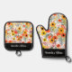 Retro Floral Pattern Personalised Name Kitchen Oven Mitt & Pot Holder Set