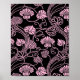 Retro Floral Pattern Pink on Black Poster
