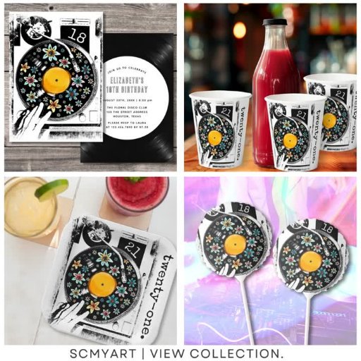 Looking for a retro personalised invitation for birthday party or other celebration? Look at our Retro Floral Personalised Vinyl Record Invitations! This retro vinyl design features, watercolor hand painted flowers, a distressed (digital effect) turnatable, You can customise the text.