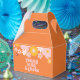 Retro inspired young wild and three third birthday favour boxes with 70's style flowers and boho fonts and colours.
