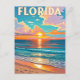 Retro Florida Beach: Illustrated Sunset Getaway Postcard